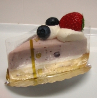 ...ブルーベリーソースと混ぜ合わせた、薄紫のレアチーズケーキ。